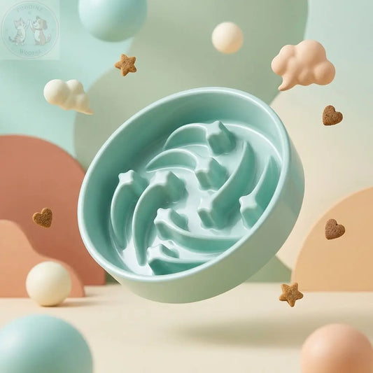 Ceramic Slow Feeder Dog Bowl - Teal Treasur